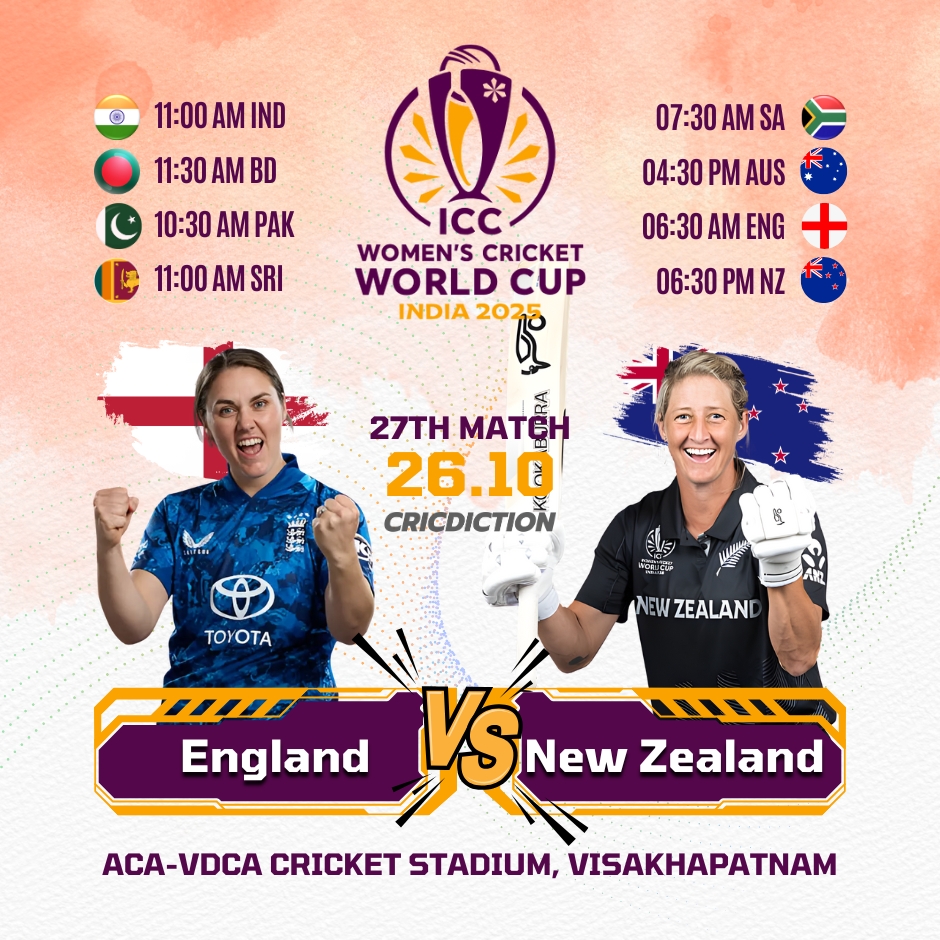 England Women (ENG W) will be facing off against New Zealand (NZ W) in match No. 27 of the ongoing […]