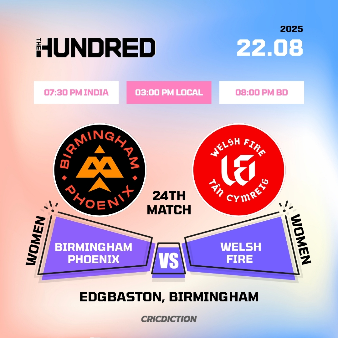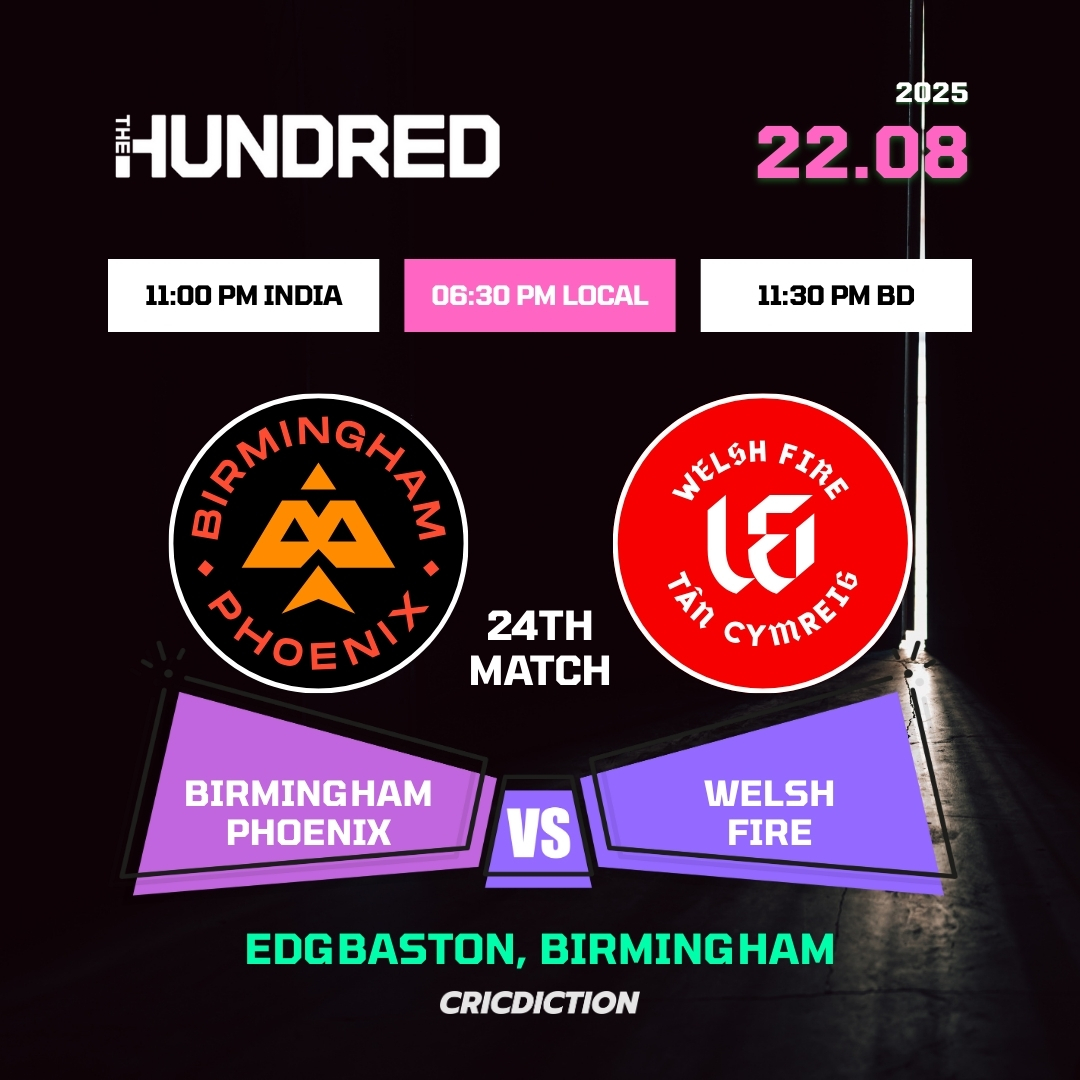 Birmingham Phoenix Women to Face Welsh Fire Women in The Hundred Women’s Competition 2025 Match Details: Match: Birmingham Phoenix Women […]