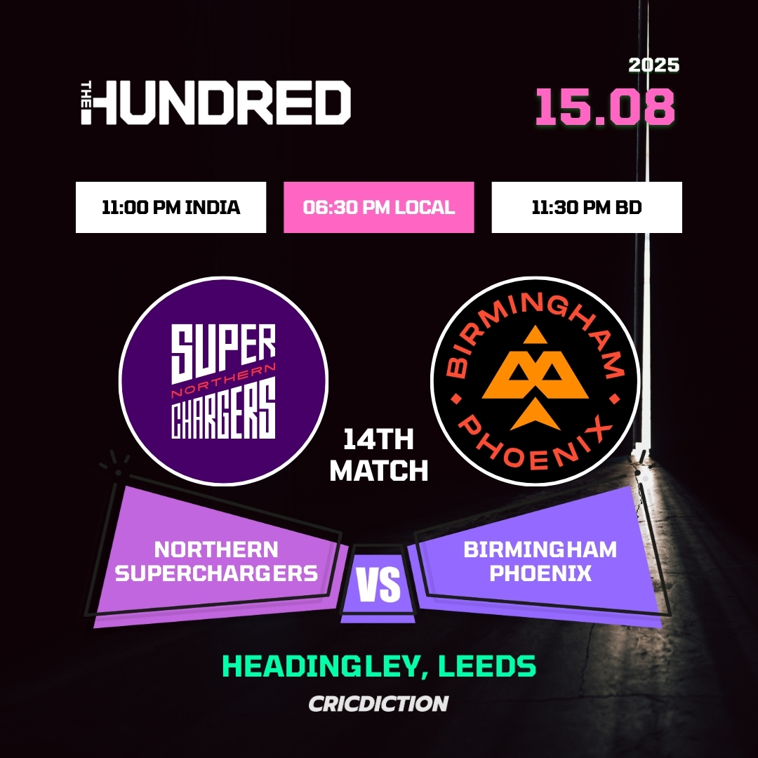 Northern Superchargers (NOS) are all set to face Birmingham Phoenix (BPH) in match No. 14 of The Hundred Men’s 2025 at […]