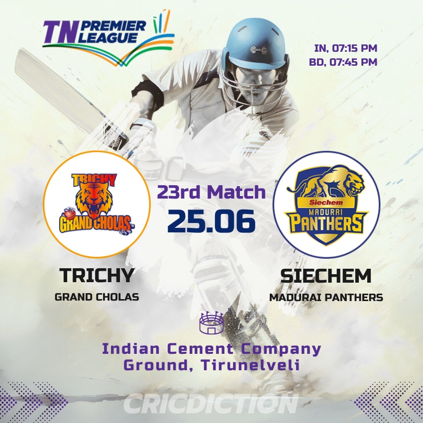 Trichy Grand Cholas will take on Siechem Madurai Panthers at the Indian Cement Company Ground in Match 23 of the […]