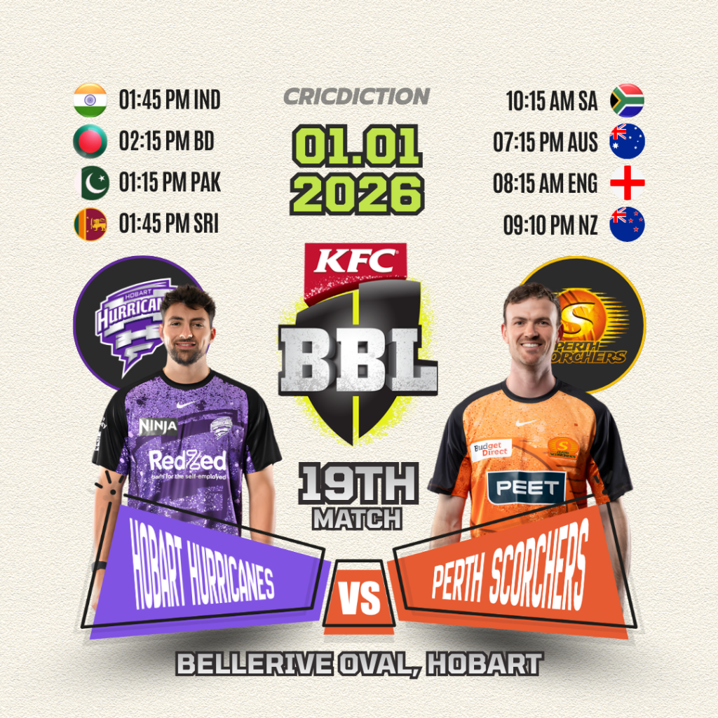 With a mix of exciting talent, experienced players, and a history of intense battles, the clash between the Hobart Hurricanes and the Perth Scorchers promises to be a highlight of the Big Bash League 2025-26 season. Cricket enthusiasts can look forward to a spectacle of top-quality cricket as these two competitive teams go head-to-head in a battle for supremacy.