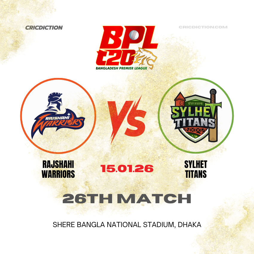 – **Match:** Rajshahi Warriors vs Sylhet Titans (RJW vs SYT), 26th Match